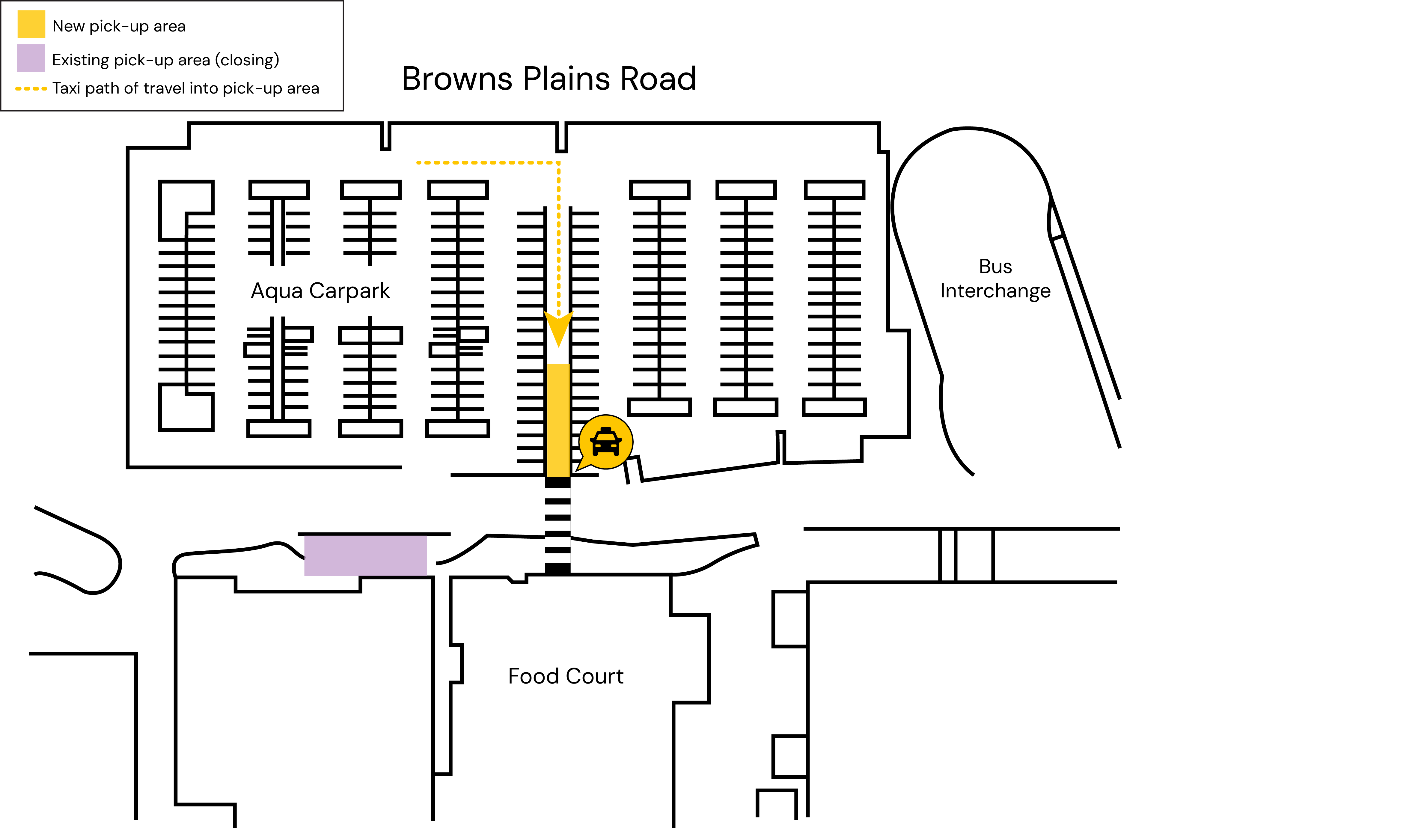 Please be aware that the Taxi Rank will be relocating across the road to the Aqua Carpark in the coming weeks.